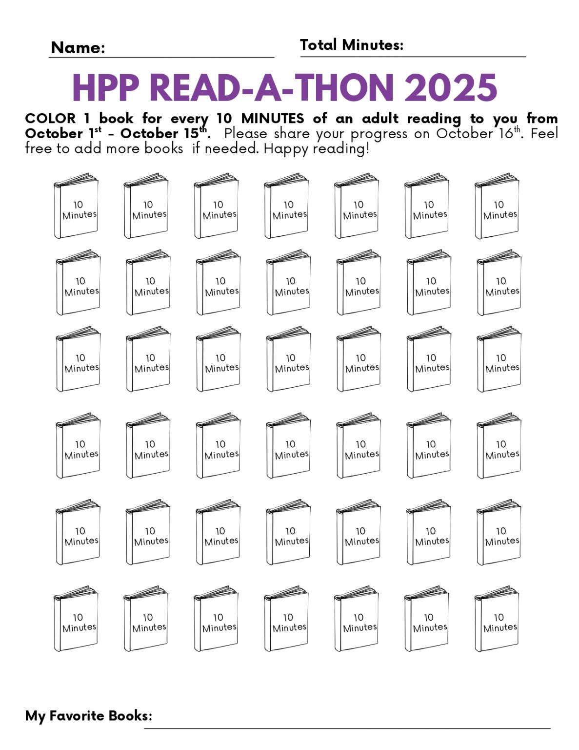 During this time, HPP students will be reading as much as they can with their families and logging their progress. We encourage donors to support our school by donating $3-$5 (or any other amount they would like) per 10 minutes of reading!